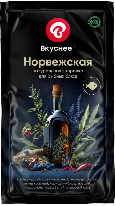 Сбалансированная и ароматная заправка с натуральными экстрактами имбиря и кардамона. Придает блюдам нотки скандинавской кухни и уютный домашний вкус. Удобный формат саше позволяет использовать по порции — свежо и до последней капли.